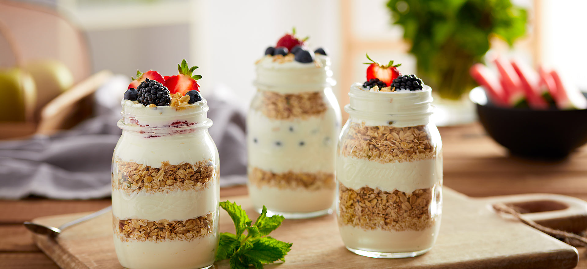 Chill before serving and top with your preferred ingredients, we love fresh fruit and muesli.
