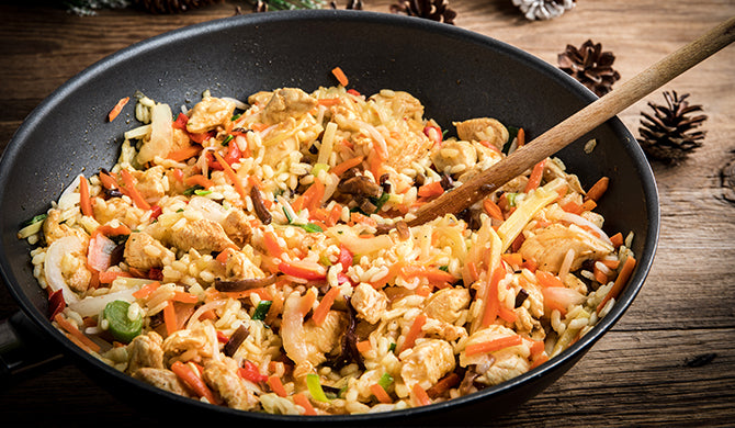 We love the fact that this flavoursome, fried rice is cooked in the EasyOven…… in just one-pot.
